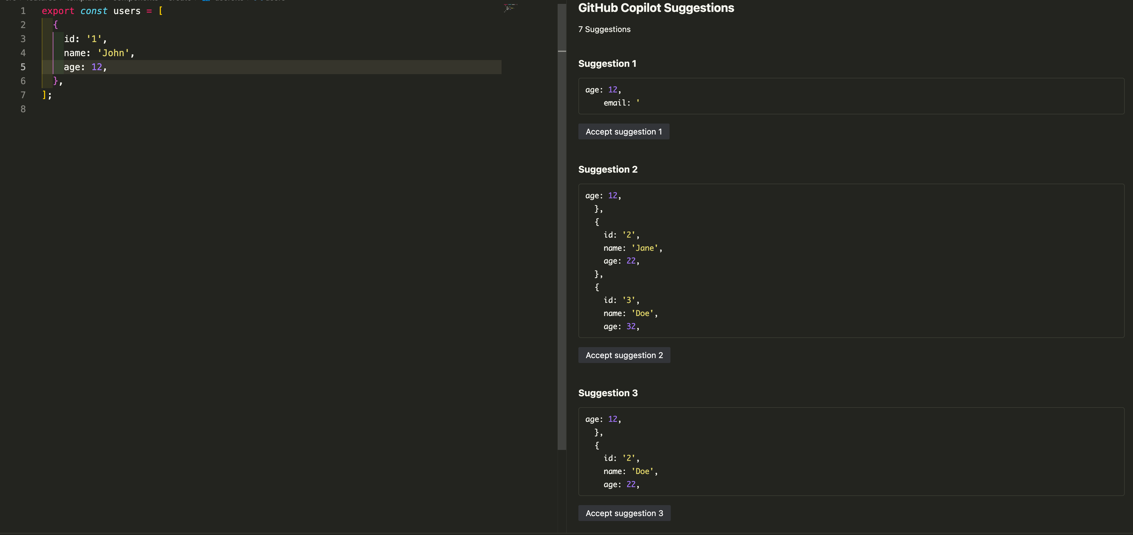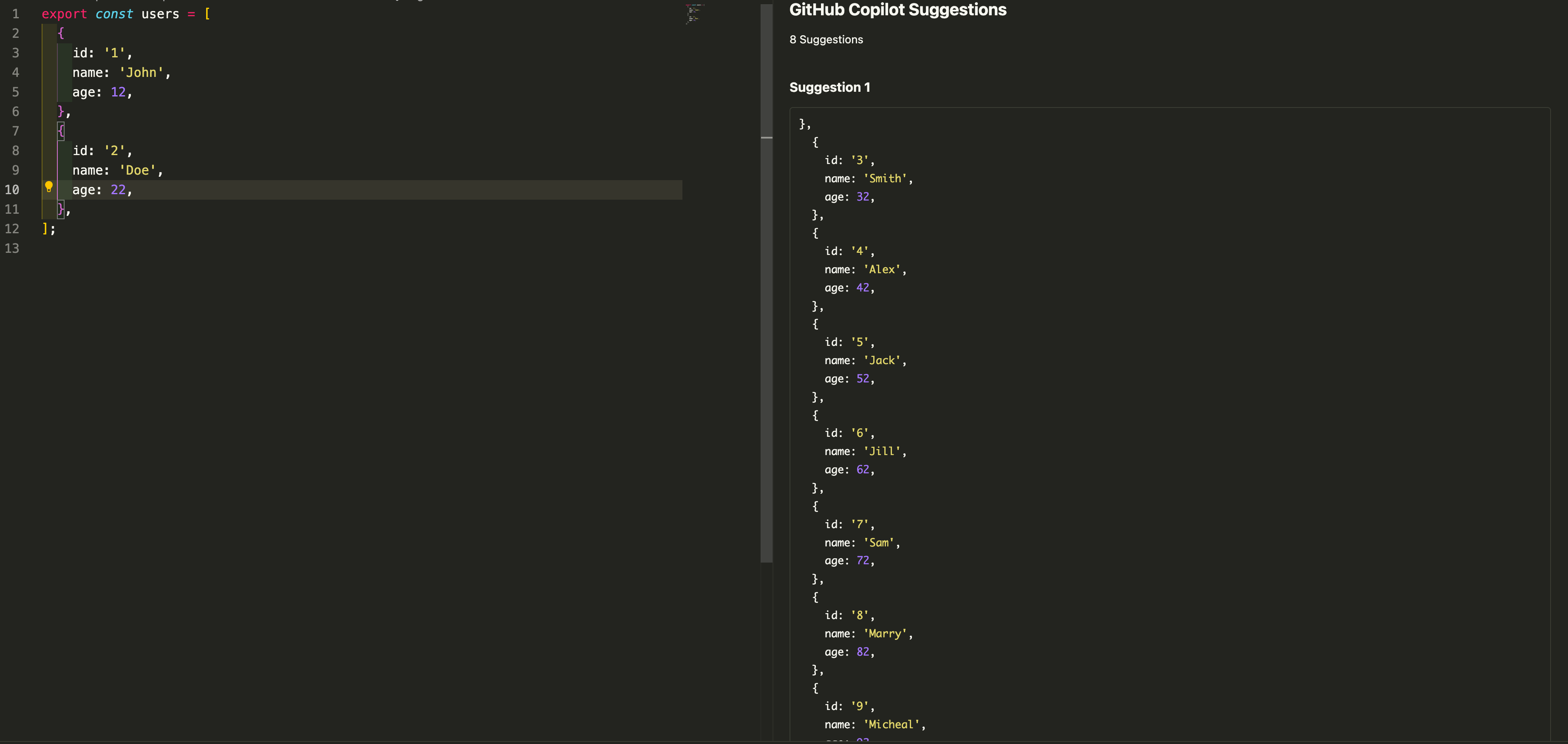 ただ、ある程度まとめてコードを作って欲しいケース、例えば手元でサクッと確認したい時のテストデータなんかは、ちょっとマッチしないケースがあります。